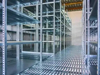 Oba regálové systémy představují celokovový pozinkovaný systém z profilovaných komponent s přestavitelnými policemi.