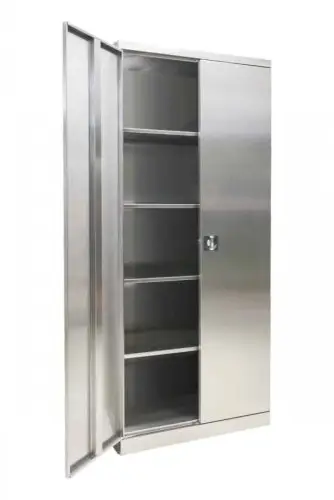 Skříně mají pevnou a kvalitní konstrukci ze svařovaného ocelového plechu. Bezpečnost uložených věcí vám zajistí cylindrický zámek se 2 klíči.